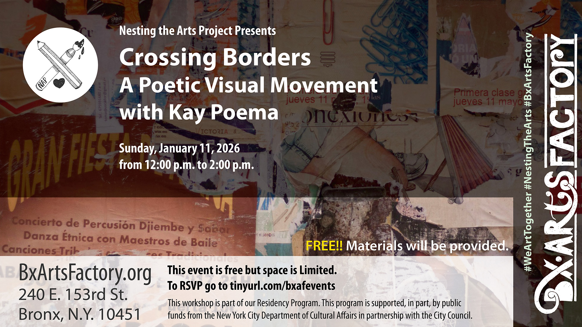 This workshop is part of our Residency Program. This program is supported, in part, by public funds from the New York City Department of Cultural Affairs in partnership with the City Council.