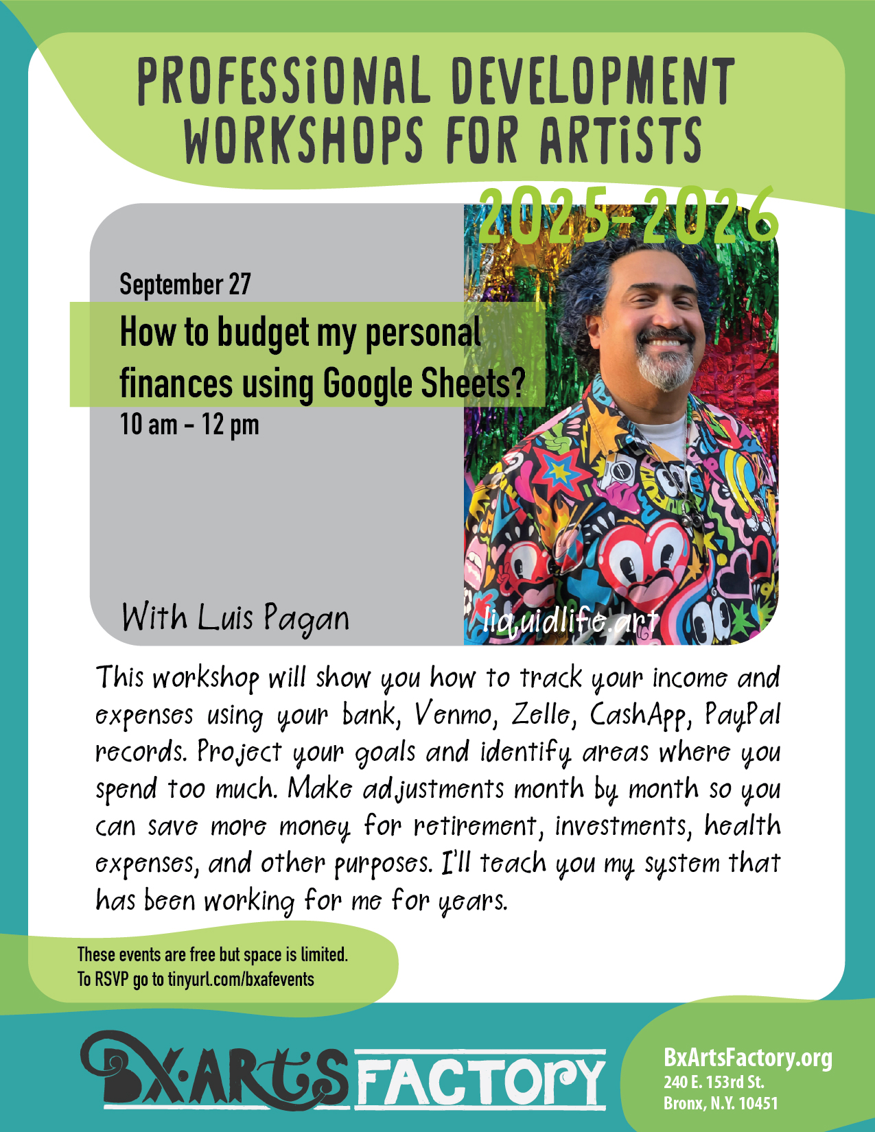 How to budget my personal finances using Google Sheets?, With Luis Pagan – Professional Development Workshops for artists
